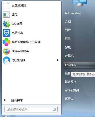 2、然后点击电脑桌面左下角的WIN图标开始按钮,然后点击右面的控制面板