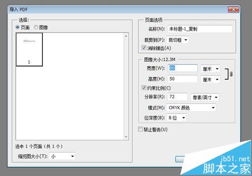 5、ps中打开pdf文件,具体设置见图片箭头指示