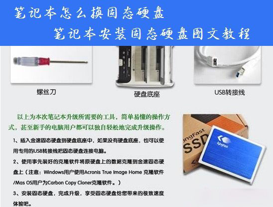 对于固态硬盘相信大家都已经不再陌生,对于如今很多主流装机用户以及新笔记本当中都有固态硬盘的身影。在更新潮的超级本中就更别说了,固态硬盘基本成为超级本必配硬件。固态硬盘指所以流行,最大的原因在于固态硬盘读取速度比传统机械硬盘更快,很多小白朋友都想将自己的台式机或者笔记本更换固态硬盘,对于台式机如何更换固态硬盘,之前我们已经有所介绍,今天再来与大家分享下笔记本更换固态硬盘详细图文教程。