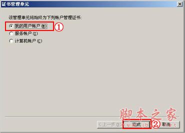 4、在证书管理单元的账户中选择“我的用户账户”,点击“完成”,关闭之前的窗口;