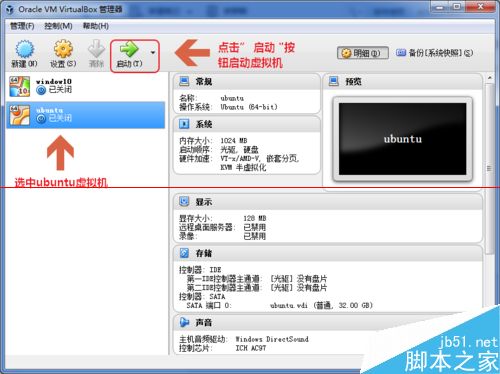 1、选中ubuntu虚拟机,点击上方的”启动“按钮,启动虚拟机
