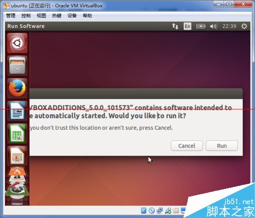 3、之后在虚拟机中会弹出”安装增强功能“对话框, 点击”run “按钮,