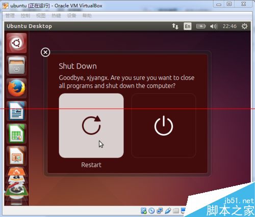 6、安装完成后按回车键退出终端,然后点击右上角的按钮,选择重启虚拟机: