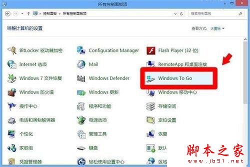 5、然后,点开控制面板中的Windows To Go。