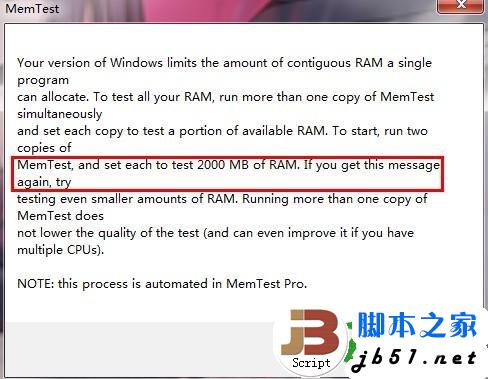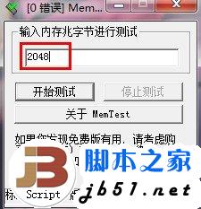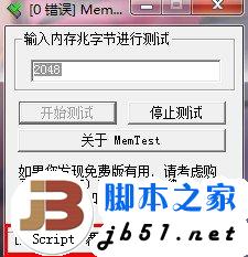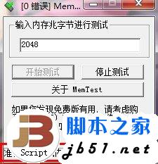 运行MemTest后,会出现一个提示框,按确认即可。然后在软件界面下输入一个值,如2048MB;然后点击“开始检测”即可,如果检测到200%~300%还是0个错误,表示内存的兼容性肯定没问题。