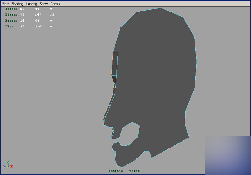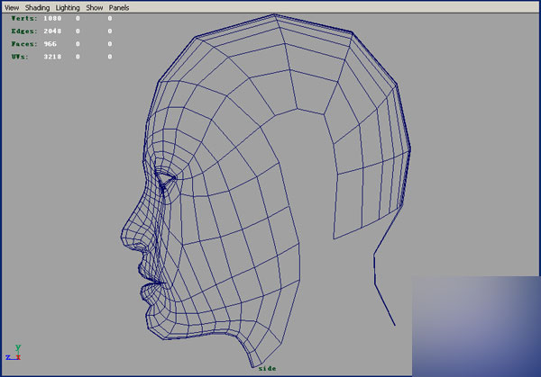 1.我们首先用maya菜单命令中的modelingpolygonscreate polygon tol命令画出女人头部的大概轮廓~