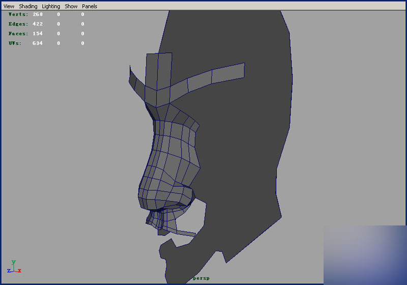 2.然后再maya菜单中的modelingedit polygonsextrude edge挤出边鼻子轮廓,具体如下: