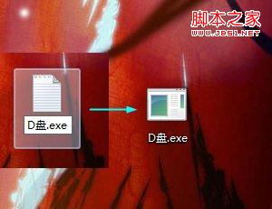 1、在桌面或者其他地方新建一个“文本文档”,然后改名(主要是改扩展名为.exe,主名随意),比方说下图的“D盘.exe”,更改后文件图标同时会发生变化。