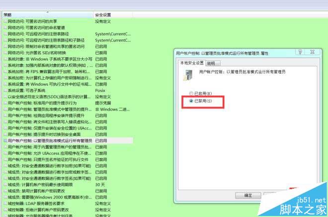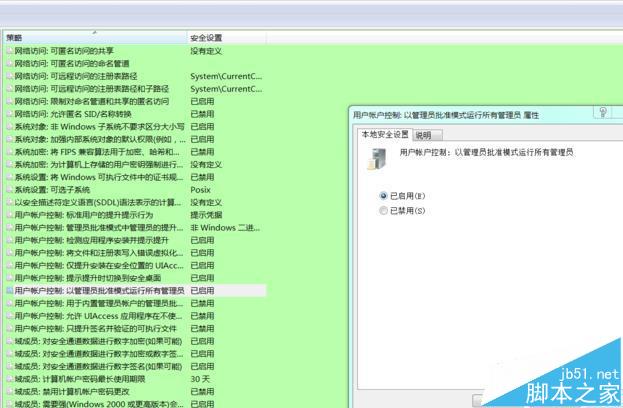4、右击”用户账户控制:以管理员批准模式运行所有管理员“点击属性,打开属性设置
