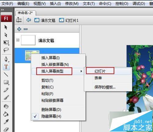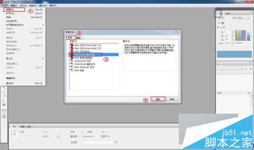 打开Flash,点击“文件”-“新建”,在弹出的窗口中选择“Flash幻灯片演示文档”,然后点击“确定”正式进入编辑界面。
