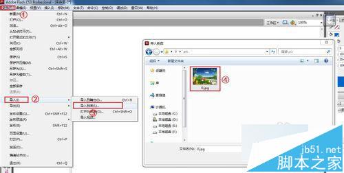 点击“插入”-“新建元件”,新建一个名为“背景”的图形元件,点击“确定”后进入“背景编辑”界面。选择“文件”-“导入”-“导入文件到库”,选择一个背景图片导入库中。