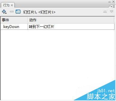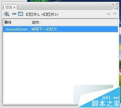 点击“行为“面板中的”+“号,从弹出的的下拉列表中选择”屏幕“→”转到下一幻灯片“。