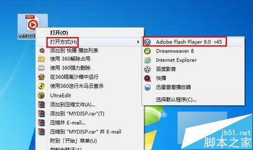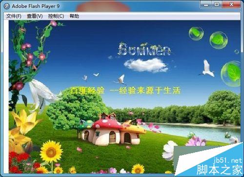 找到生成的文件”MYDISP.swf“文件,然后右击,选择”Adobe Flash Player 9.0“打开,然后就可以测试一下效果啦。当点击第一张幻灯片时就要转到下一张幻灯片上。至此,整个幻灯片制作过程完成,大家可以依据这个制作原理,制作出自己喜欢的幻灯片来。