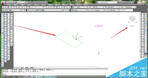 1、我们先使用长方形命令绘制一个长方形,调整到等轴测图模式,选择三维建模中的拉伸,指定高度,着色后效果如图所示,生成需要的实体。