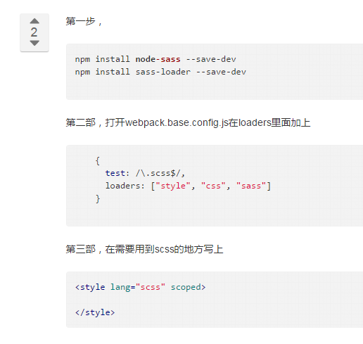 关于在vue-cli搭建的项目中怎么配置sass,网上搜到的基本是这种答案: