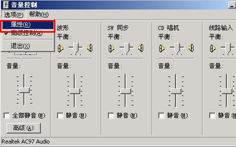 1、依次单击“开始”、“程序”、“设置”、“控制面板”,双击打开“声音,语音和音频设备”,单击“选项”菜单打开“属性”,如图: