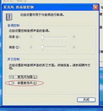 5、将“前置麦克风”取消选中,然后点击“关闭”即可。如图: