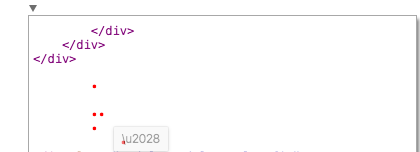 另外,直接在浏览器检查里边的html选择Edit as html,也可发现在空白处存在小红点,鼠标移上会直接显示该字符是\u2028【图二】。查阅资料发现,这样的换行符在JavaScript中并不支持。