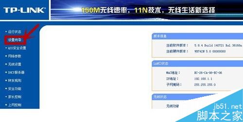 4、电脑进入无线路由器设置界面,点击“设置向导”进入下一页面点击“下一步”。直到进入“无线设置”页面。