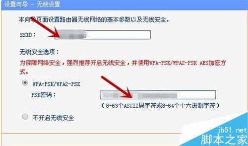 5、在SSID栏中,设置wifi昵称,可以是中文,英文,也可是数字等。在psk密码栏,设置密码,为了增强其保密功能,尽量以数字,字母(大小写)混合使用,设置完毕,点击“下一步”然后点击完成。