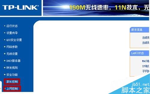 6、如要进行其它功能设置,则可返回无线路由器设置页面,进行其它功能设定。比如“家长控制”和“上网控制”等等。
