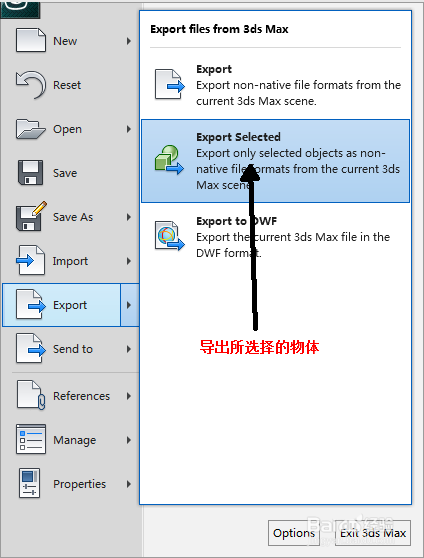 2、选择上图中所有的几何体,然后直接导出FBX,见下图。