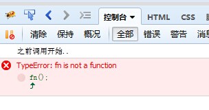 可以看到代码在执行到第一次调用fn()函数的时候,提示:fn is not a function (fn 不是一个方法),遇到错误而终止运行。