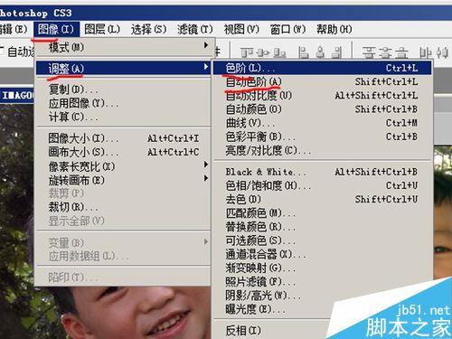 3、调整图像的色彩: 点击 >图像 > 调整>色阶,手动调整滑动条,把图像中看到有层模糊的东西去掉。