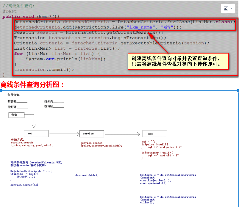 - 离线条件查询:(可以解决在持久层中进行繁琐的sql语句的拼接)