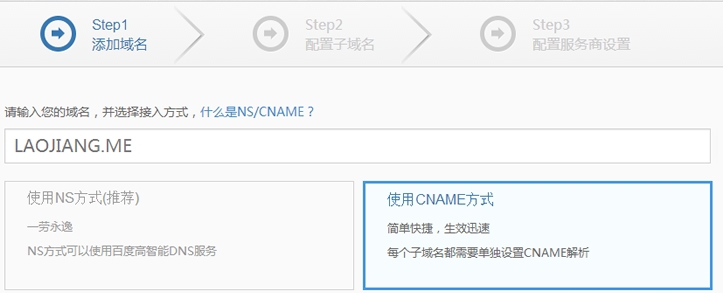登陆账户之后我们就可以添加站点。这里我使用CNAME解析,域名采用DNSPOD管理DNS,因为后面我们会考虑到搜索引擎部分的解析用真实IP,而不用CDN的IP,这样起到站点IP回流,有利于搜索引擎对于站点的体验。
