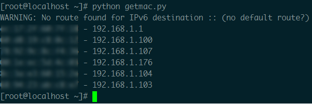 以上就是清新中心最近收集整理的关于python通过scapy获取局域网所有主机mac地址示例的全部内容,更多相关python通过scapy获取局域网所有主机mac地址示例内容请搜索靠谱客的其他文章。