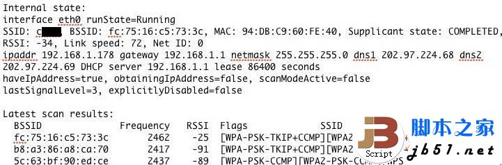 正在使用的和周边的WiFi网络信息