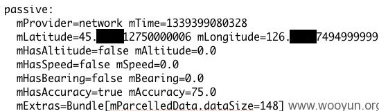 - 用户敏感数据,包括:已连接的WiFi网络(MAC地址、SSID、类型、IP、DNS、网关、DHCP)、周围可用WiFi网络的SSID/BSSID和类型等;、Broadcast处理的历史记录(可以对用户行为做统计)、当前地理位置、历史地理位置、用户当前账户的用户名、用户数据同步账户的用户名和时间、软件使用情况统计数据