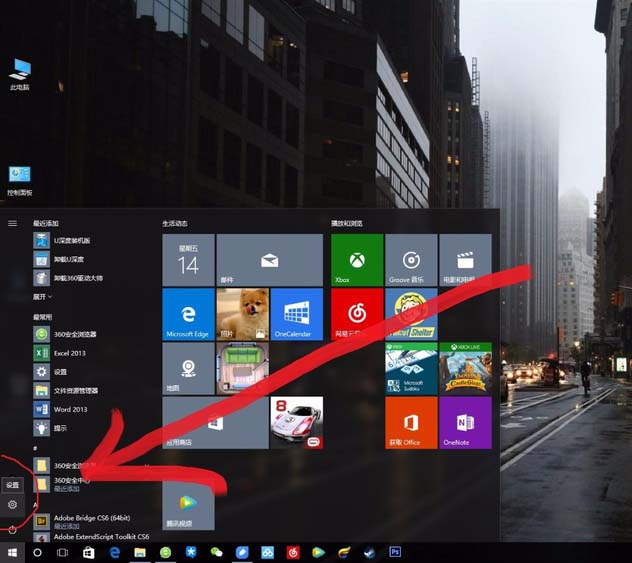 1、首先我们在桌面点击开始按钮,点击设置,进入设置页面。ps:其实在桌面直接右键点击显示设置也可以,这里凑个步数。