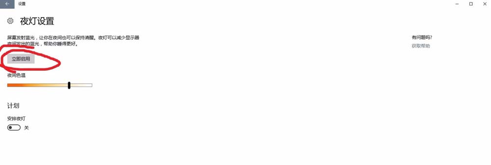 5、进入这里我们可以看到和手机类似的设置色温的界面,直接点击立即开启,是不是忽然发现屏幕黄了!