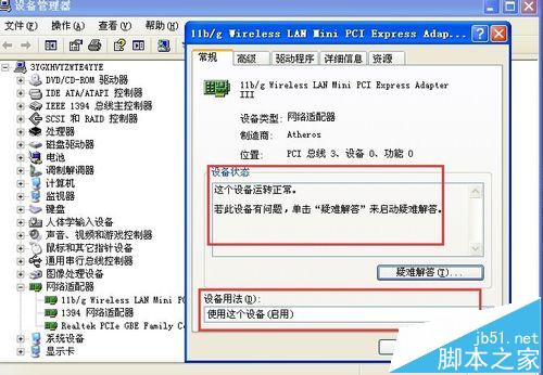 3、扫描完毕之后,再检查下设备管理器中各个硬件的驱动状态,尤其是无线网卡的设备状态。首先鼠标右键“我的电脑”--》选中设备管理器--》点击网络适配器--》双击无线网卡 (wireless字样的),可以观察到无线网卡状态
