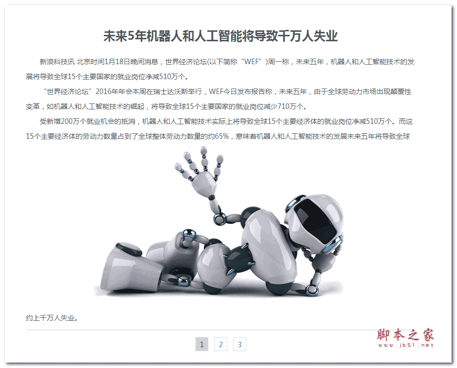 前端JS分页:使用Javascript将长文章内容截取分段,根据请求展示不同的分段内容,达到分页效果。这种方法一次将内容读取,由前端js处理分页,体验好。