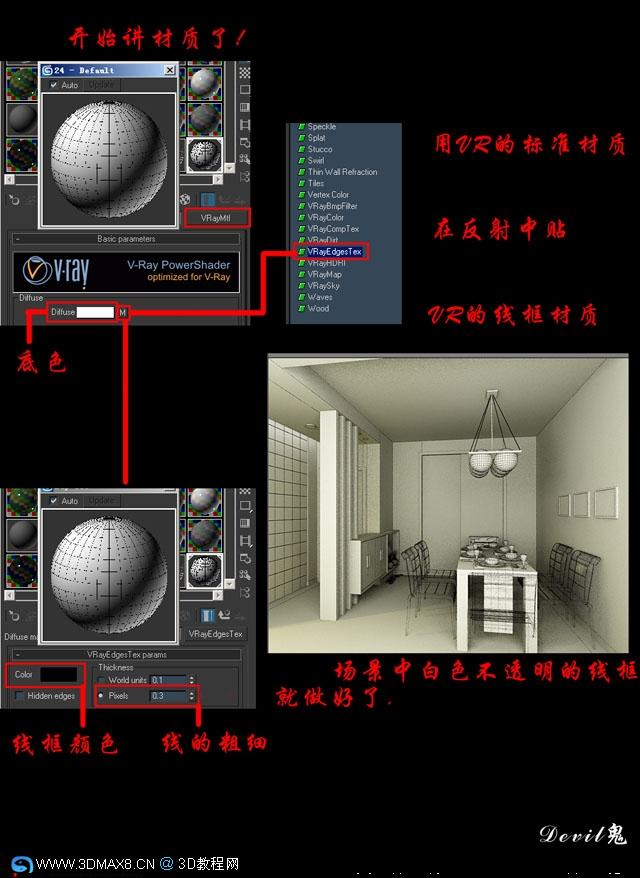 VRAY透明线框教程: