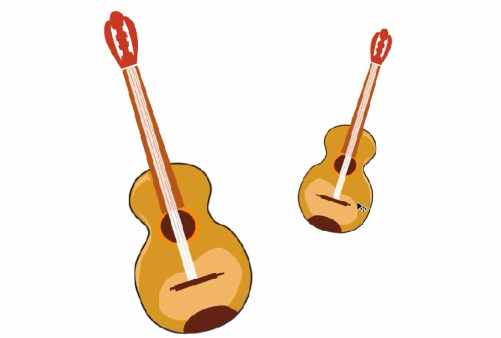 8、接下来,我们继续完成吉它上面其它路径的颜色填充,从而完成整个吉它的绘制。