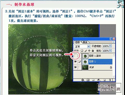 2、隐藏图层1副本副本,选择图层1,按住Ctrl键并单击图层1激活选区。执行:滤镜 > 扭曲 > 球面化,数量:100%,按Ctrl + F 再执行一层,做出球面的效果。