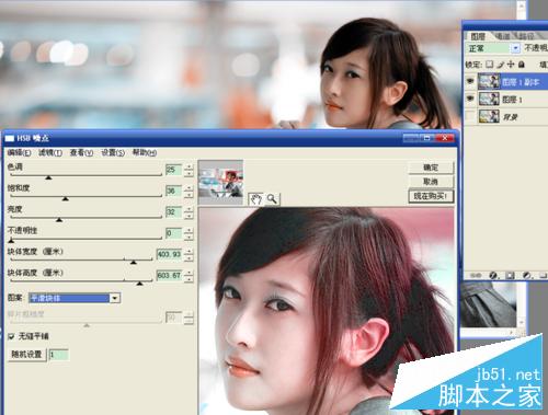 3、按ctrl+j创建图层1副本,选择“滤镜”中有“噪点”的外挂滤镜选项,调整参数让图片变亮,确定。这一步要仔细调整,最终的效果受它影响。