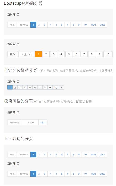 上例就是第一Demo,Bootstrap风格的分页。具体参数稍后介绍,这里要了解的是,如果使用的不是id,而是class,就会初始化该class的所有元素,实现上面”两个分页联动”的效果。