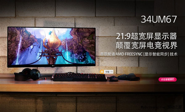 今日LG宣布,旗下34寸LG 21:9超宽屏显示器34UM67在京东首发,售价3999元。除了21:9的超宽面板,该显示器最大的亮点就是支持AMD FreeSync技术,在消灭画面撕裂情况的同时,还能在几乎任何帧率下流畅游戏。