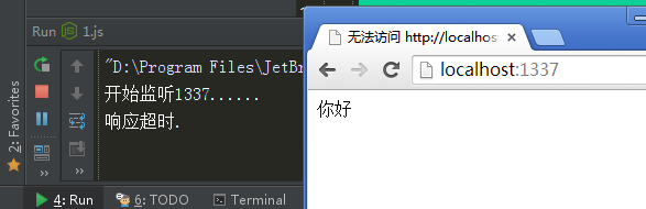 如果在指定的时间内服务器没有做出响应(可能是网络间连接出现问题,也可能是因为服务器故障或网络防火墙阻止了客户端与服务器的连接),则响应超时,同时触发http.ServerResponse对象的timeout事件.