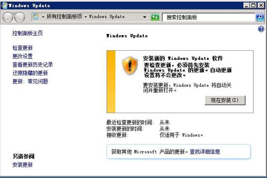 补丁更新就比较简单了,直接打开Windows Update 更新即可。