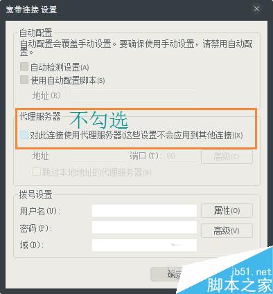 3、然后取消勾选设置代理服务器的选项。