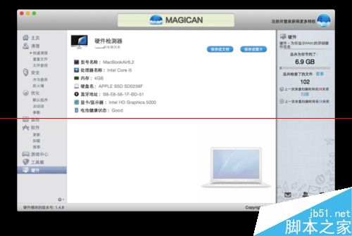 1、一般来说,各种for Mac的杀毒软件都有查看硬件的功能,如360和Magican。(本经验以Magican为例)