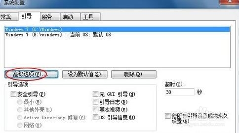 在弹出的“引导高级选项”对话框的左上角,我们可以看到默认情况下win7的处理器个数设置为1。