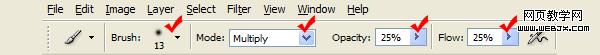4、我们使用一个13px -15 px 暗调的笔刷在眼睛周围绘制,设置黑色,然后设置如下。