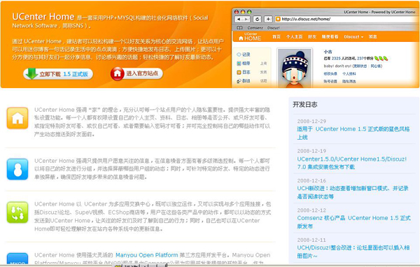 我们选取的SNS程序是5G和同事录这些大型SNS网站使用的UCenter Home,又适逢康盛创想(Comsenz,也就是出品知名社区软件Discuz!的公司)推出这个软件的最新版本1.5,我的SNS网站一天之内就上线了。以前只是玩SNS,现在真正运营才发现SNS网站的强大。